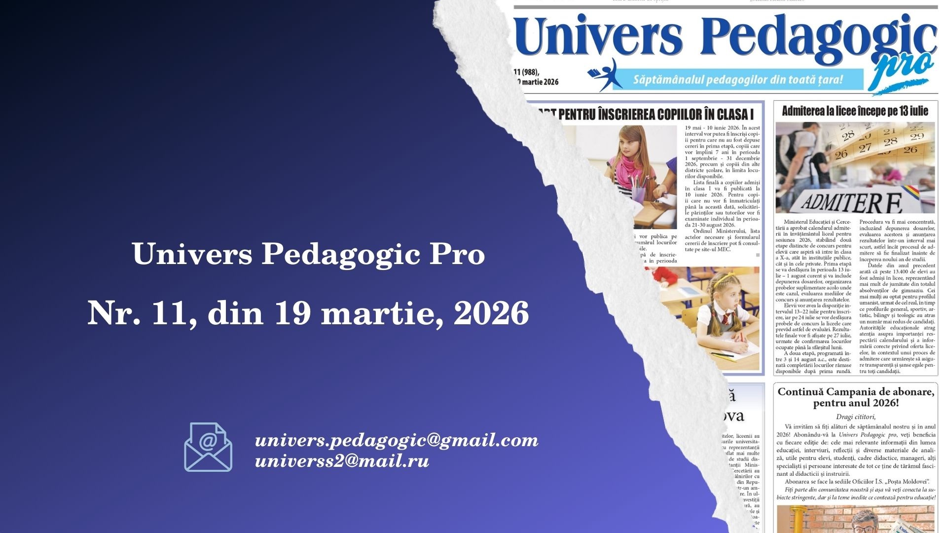 Știm că așteptați cu nerăbdare, în fiecare zi de joi, ziarul pedagogilor din toată țara,