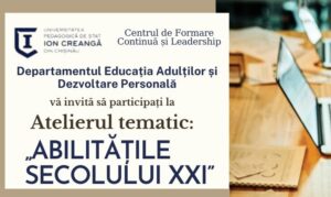 CFCL vă invită la atelierul tematic: „Abilitățile secolului XXI” Departamentul Educația adulților și Dezvoltare personală din cadrul Centrului Formare Continuă și Lea